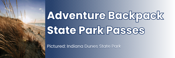 This Adventure Backpack kit includes a letter pass which will allow you and your family to gain free entrance to any of the 37 Indiana State Parks. Inside the backpack, you will also find supplies to help you explore all the beauty at our state parks. Use this backpack to explore miles of trails that range from easy to very rugged or experience at your leisure biking, swimming, bird watching and wildlife, camping, fishing, interpretive programs, nature centers, or just relax as you enjoy spending time outdoors with family.